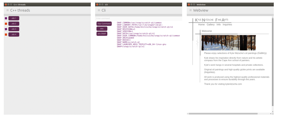 The go.sh script builds (to prime stage), installs (via snap try prime), connects the interfaces, and launches the snap. The key here is the interface connection:snap connect scratch-qt:platform ubuntu-app-platform:platform